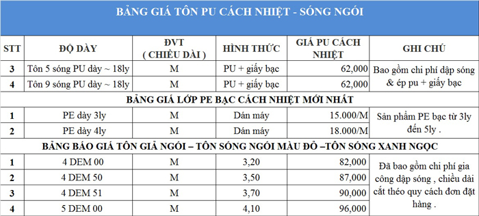 Báo giá mặt hàng tôn