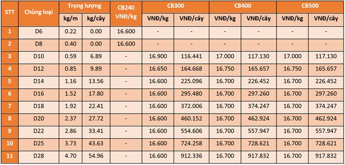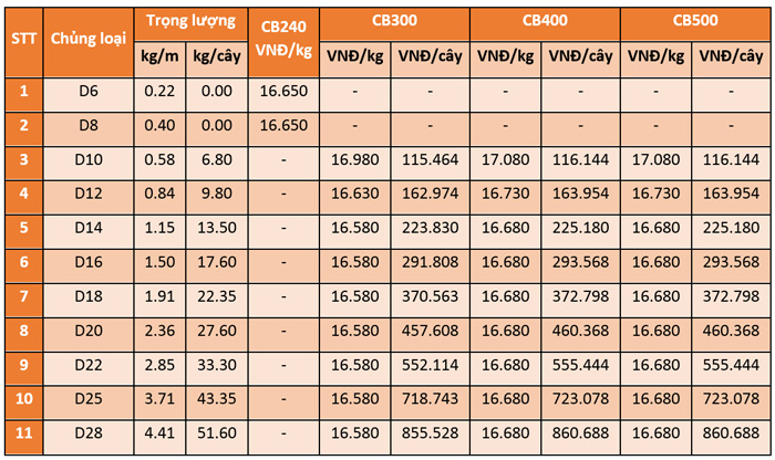 Bảng giá thép Việt Đức