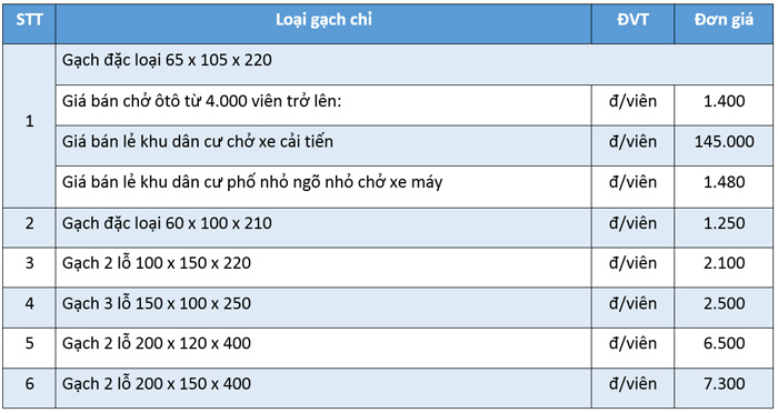 Bảng giá gạch chỉ