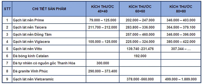 Bảng giá gạch lát nền