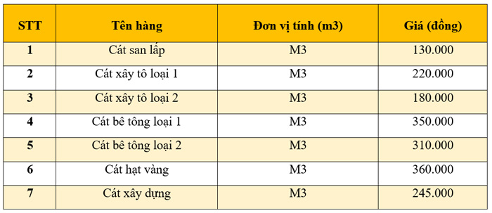 2. Báo giá cát xây dựng