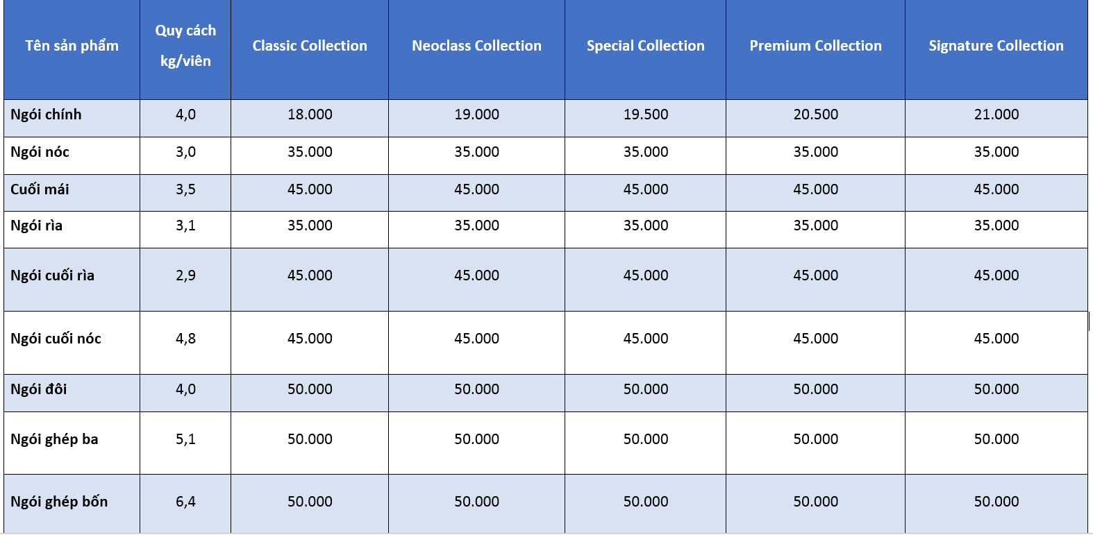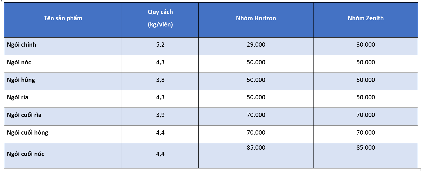 Bảng giá ngói lợp nhà dạng phẳng tại Thái Bình như sau