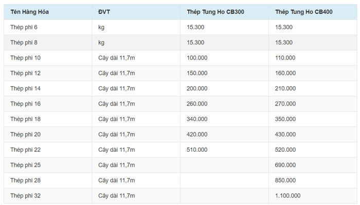 Thép Tung Ho là sản phẩm thép xây dựng mới trên thị trường, nhưng được sản xuất trên dây chuyền hiện đại, sản phẩm sắt thép Tung Ho ngày càng được nhiều dự án xây dựng và người dùng tin tưởng. Dưới đây chính là bảng giá thép Tung Ho tại Thanh Hóa mới nhất 2024 mà chúng tôi tổng hợp được.