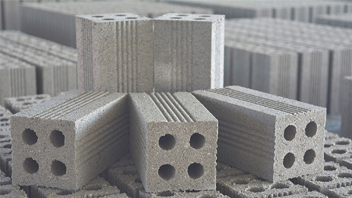 - Gạch block được sản xuất từ xi măng, cát và xỉ than. Độ bền của gạch này được cải thiện bằng máy ép, rung lên viên gạch và thành phần kết dính bên trong.