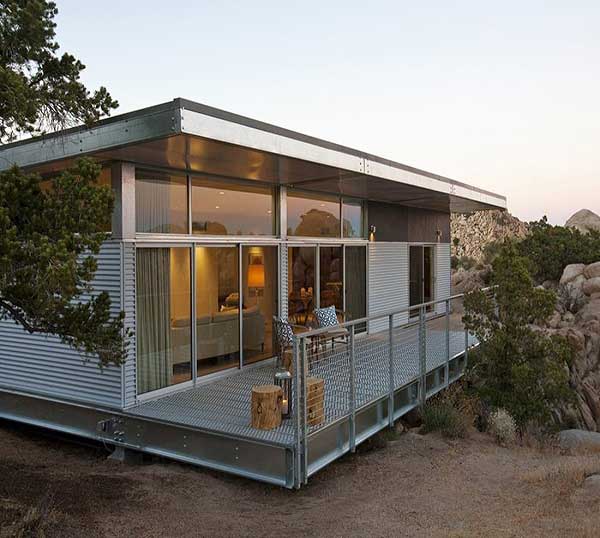 Được kết hợp giữa gỗ và khung thép chắc chắn. Mẫu thiết kế này gây ấn tượng mạnh mẽ nhờ vào sự phối màu, sự ăn khớp giữa nguyên vật liệu bằng sắt có sự xuất hiện của gỗ tự nhiên làm điểm nhấn cũng như là phần nội thất quan trọng từ khung cửa sổ, viền mái và trang trí trong nhà.