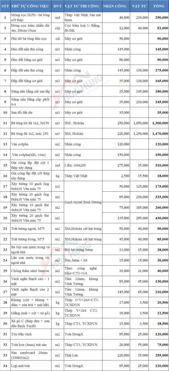 Đơn giá cho một ngôi nhà tiền chế dành cho phần thô bao gồm có khung và mái. Chưa bao gồm phần móng và phần hoàn thiện của ngôi nhà. Và dĩ nhiên là chưa có chi phí dành cho nội thất thì chi phí dao động từ 1.500.000 đồng đến 2.500.000 đồng/m2. Còn đối với chi phí xây dựng hoàn thiện cho ngôi nhà tiền chế sẽ có mức giá cao hơn. Chi phí được dao động khoảng từ 4.000.000 đồng đến 5.000.000 đồng/m2.