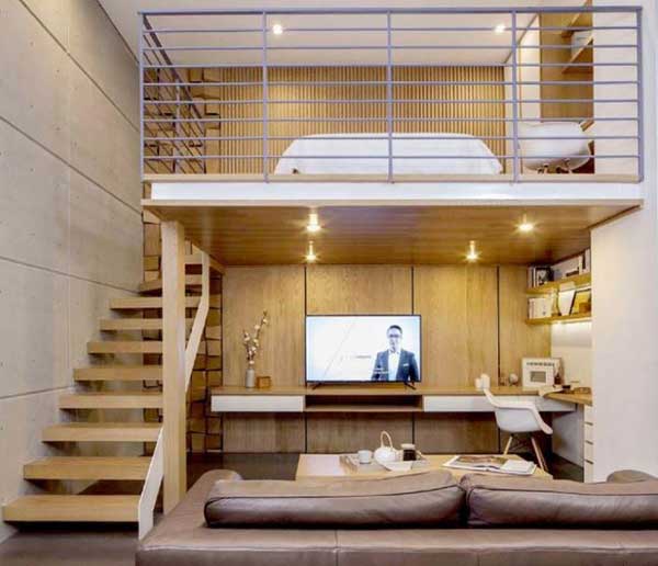 - Phòng ngủ có thể kê giường đôi, giường tầng hoặc xây gác luôn là một trong những cách tiết kiệm diện tích rất hiệu quả